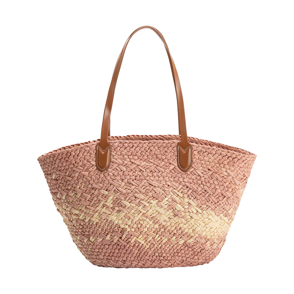 Sunset Blush Straw Tote Bag