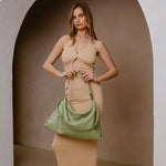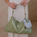 Introducing Charlie, the perfect minimalist handbag made from recycled vegan leather. It boasts a crinkly and shiny appearance. With both crossbody and shoulder straps, it's versatile and stylish. You can fit all your essentials while staying organized in the spacious interior.