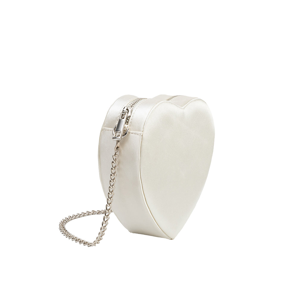 Fran Ivory Satin Heart Top Handle Bag