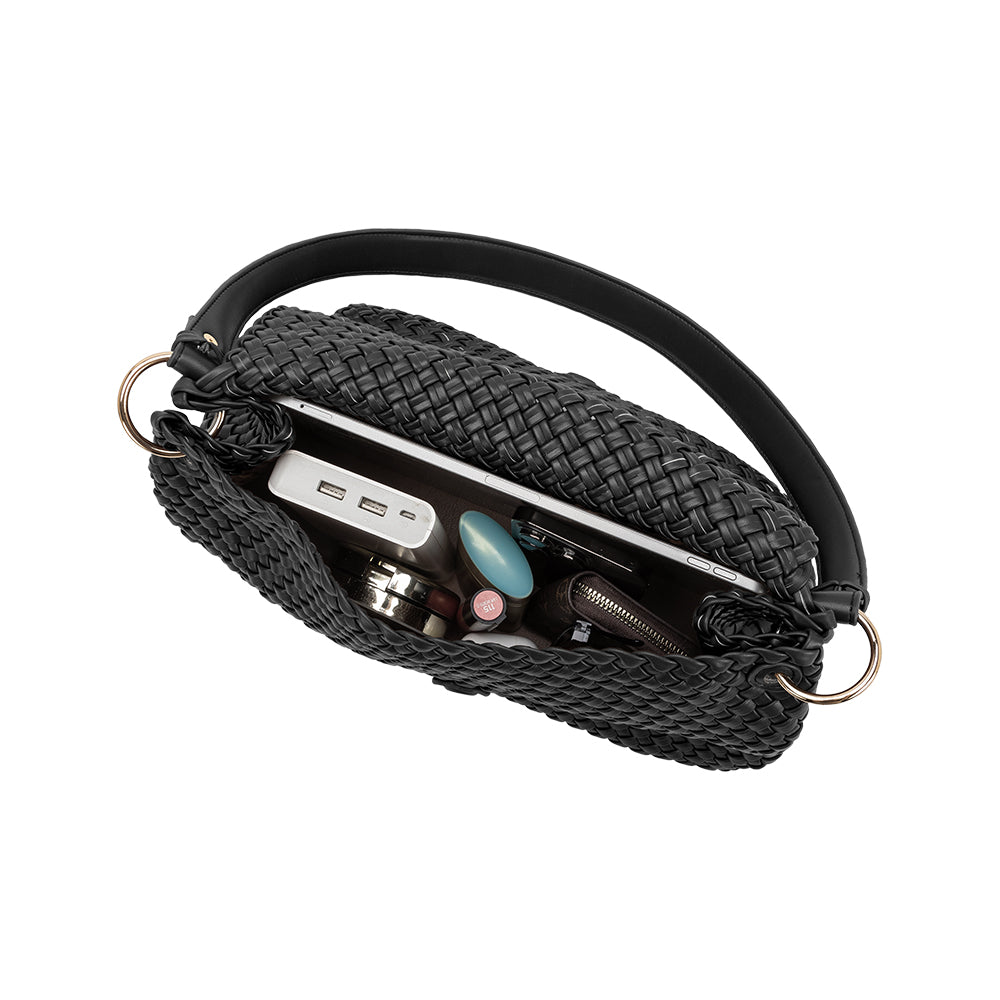 Natalia Black Woven Recycled Vegan Shoulder Bag